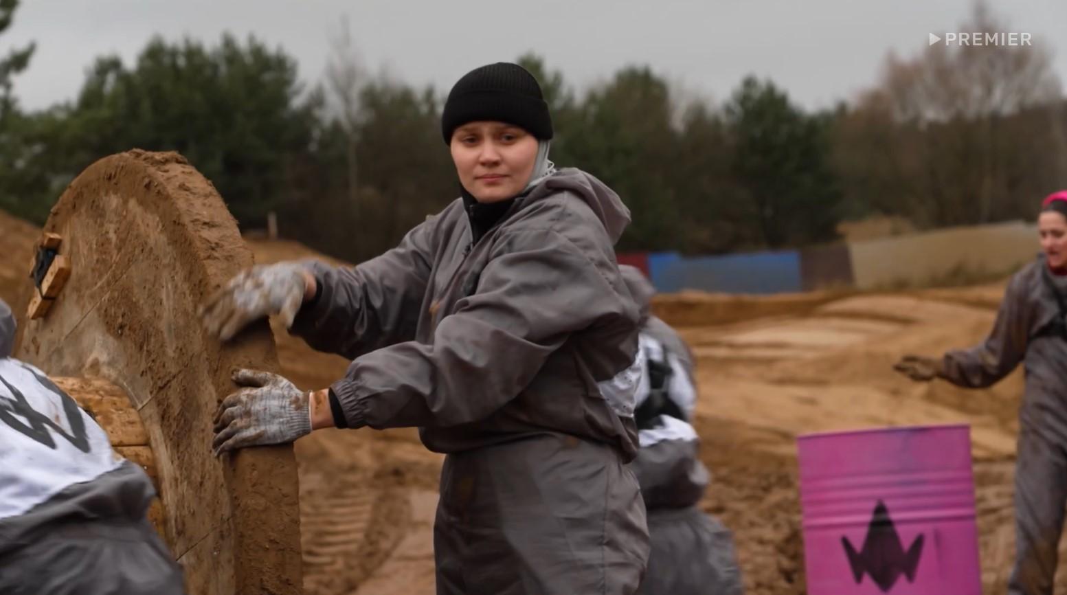 Первым заданием для девушек стало катание большой деревянной катушки по размокшей глине. К ней нужно было присоединять цепи, символизирующие личные обиды. У Костенюк эти обиды были связаны с родной и приёмной матерями.