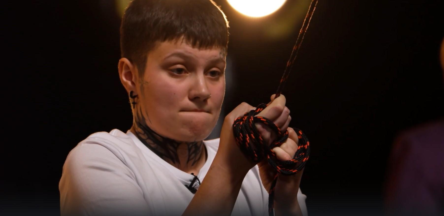 Екатерина призналась, что задача далась ей тяжело: «Я неправильно намотала себе [трос] на руки, а кубики килограммов 10-15».