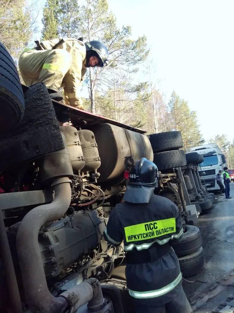 Грузовик, перевозивший солнечные батареи, опрокинулся на трассе в Шелеховском районе