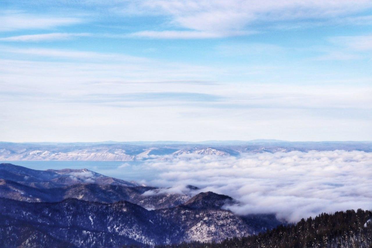 Аэросъемка озера Байкал, выполненная с борта самолета во время полета